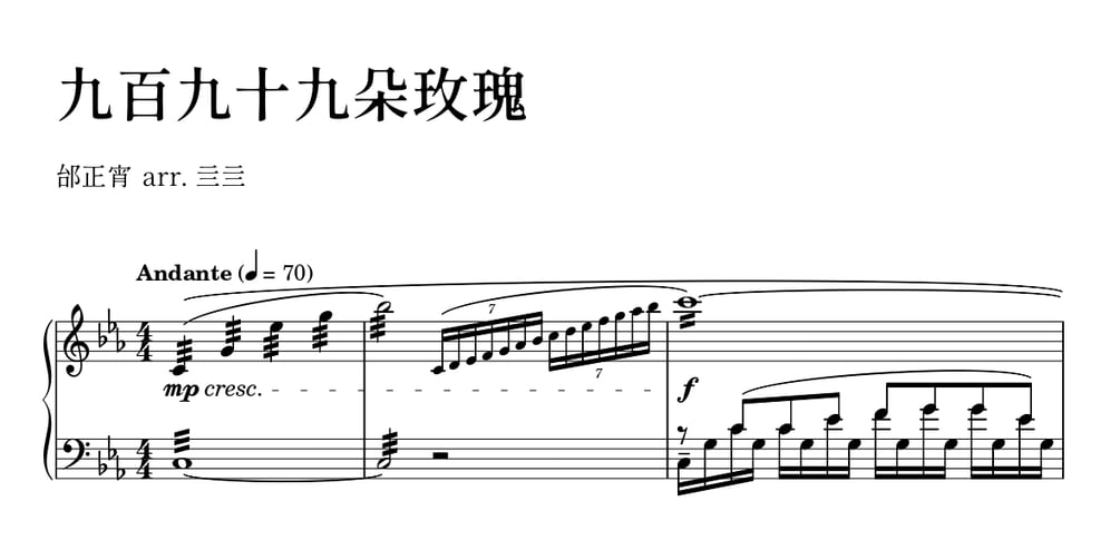 九百九十九朵玫瑰 揚琴獨奏$3+$3+https://schema.org/InStockusd亖亖亖亖主觀難度(短曲):5/8型號需求: 401 型揚琴即可注意:幣值為美金 (USD)Name a fair price:$Add to cartSize197 KBLength4 pagesAdd to wishlist New wishlistShareShare on XShare on Facebook Copy linkCopy product URL
